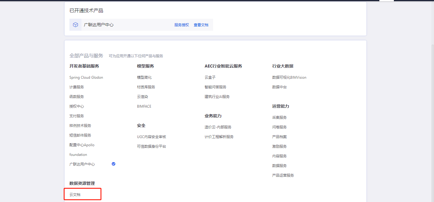 step1:登录AECORE,创建应用,开通云文档服务;