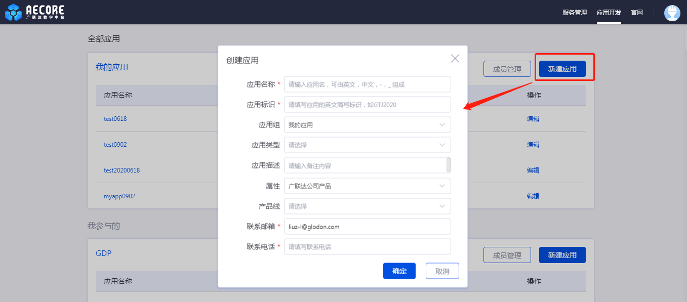登录AECORE创建应用,若已经登录,导航栏切换至应用开发即进入ISV控制台
