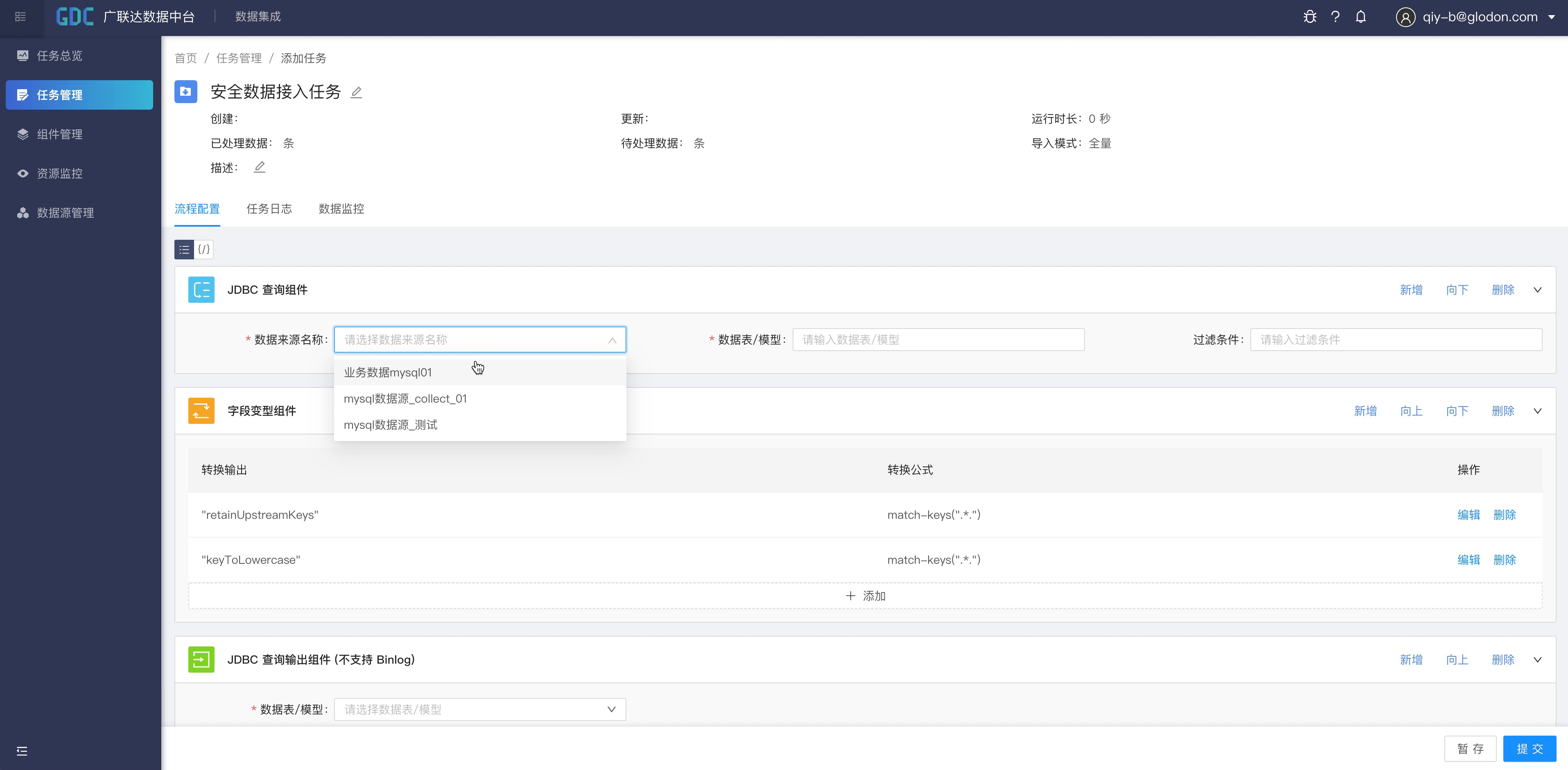 利用数据中台的数据集成模块,用户可以将MySQL,sqlserver,MongoDB,postgreSQL,HTTP,MySQLbinlog,Mongooplog等类型的数据来源的数据导入到数据中台,实现多类型数据源之间的数据迁移。支持开启数据监控服务,通过邮件的方式对数据准确性进行监控。并且通过配置规则,集成任务可以自动暂停或者停止。